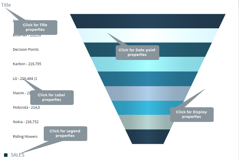 A Funnel chart is a type of chart often used to represent stages in a sales process and show the amount of potential revenue for each stage. This type of chart can also be useful in identifying potential problem areas in an organization’s sales processes. A Funnel chart is similar to a stacked percent Bar Line chart.