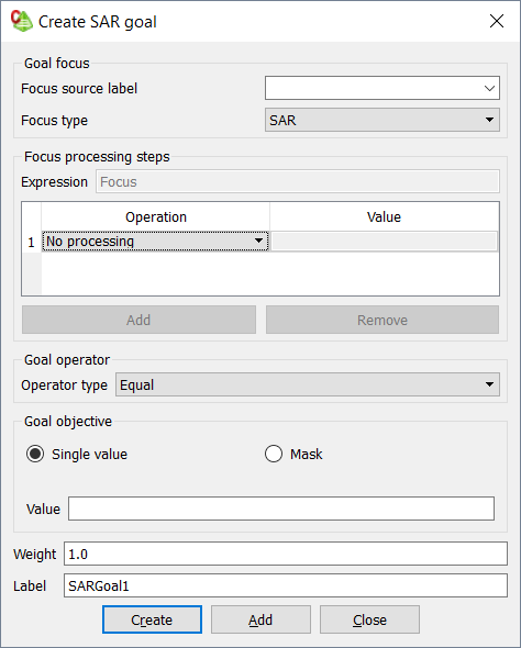 On the Request tab, in the Optimisation group, click the  Add goal function icon. From the drop-down list, select  SAR goal.