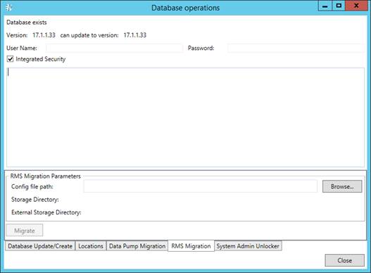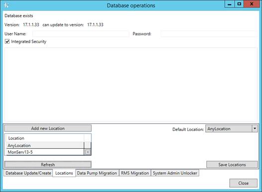 Select the Integrated Security check box to use Windows Authentication. The specified user must have system administrator rights to update database. |