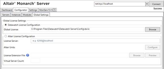 Monarch Server supports two global license sources: Datawatch license and Altair license. This section details these two sources.