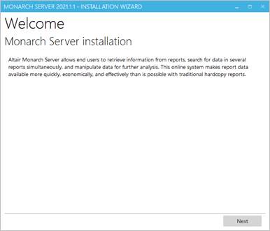 1. In the directory with installation files, double-click MonarchServerInstaller.exe to launch the Monarch Server Installation Wizard.