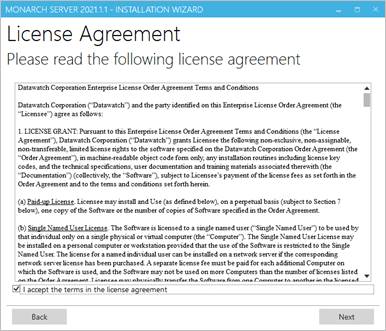 If you need to install the latest version to a new directory using a new database, launch the Monarch Server installer and follow the steps below.
