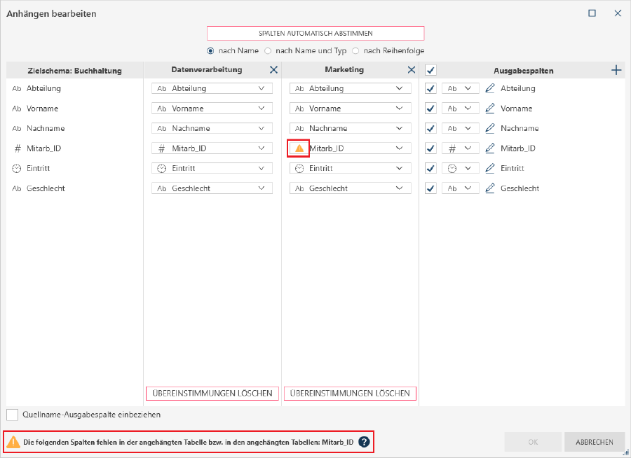 Manchmal können sich die zugrundeliegenden Quelltabellen, aus denen ein Anhang besteht, ändern. Beispielsweise könnte eine Spalte gelöscht oder umbenannt werden.