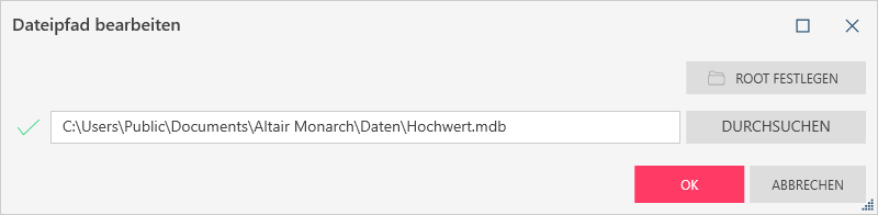 Links des Dateipfads wird ein Häkchen eingeblendet, sofern der ausgewählte Dateipfad gültig ist.