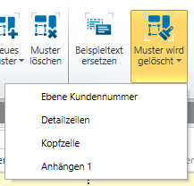 Um das Löschmuster zu verwenden, müssen Sie in der Berichtsentwurf-Multifunktionsleiste die Option Löschmuster und aus der Musterliste im Dropdown-Menü ein Muster auswählen: