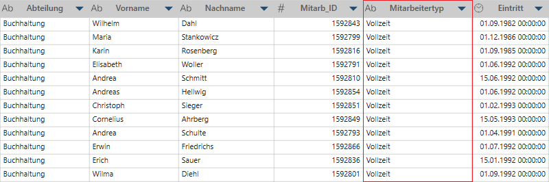 Klicken Sie auf das Symbol Feld bearbeiten rechts vom Namen des Feldes, um den Ablaufparameter für diese Spalte festzulegen oder auszuwählen.