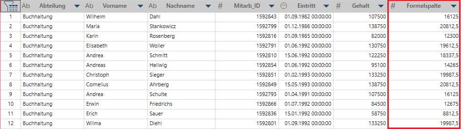 Eine neue Spalte mit einer Formel erstellen
