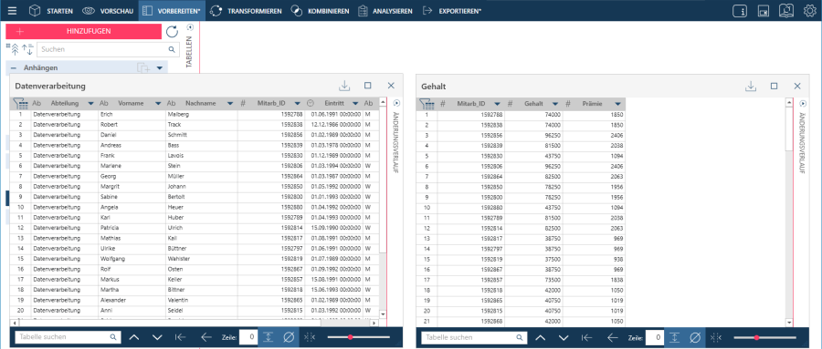 Sie können mehrere Tabellen gleiten lassen und ihre Datensätze gleichzeitig anzeigen.