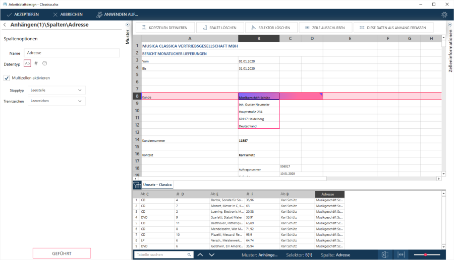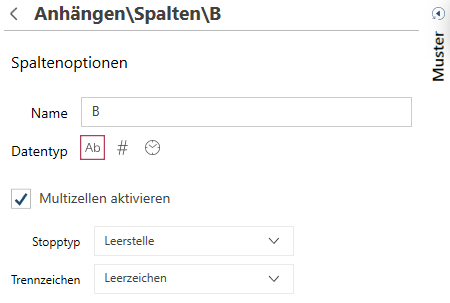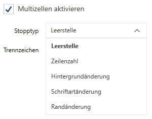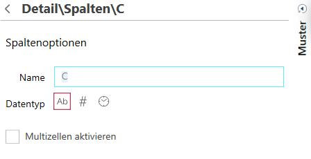 Um Zellenwerte in eine Spalte zusammenzufassen, aktivieren Sie in den Spalteneigenschaften „Multizellen aktivieren“: