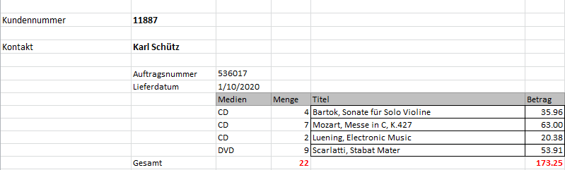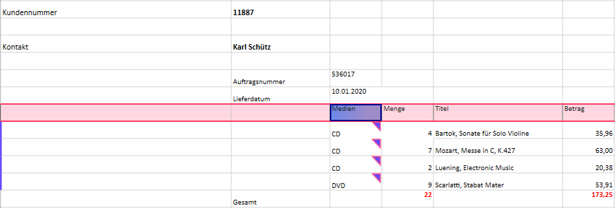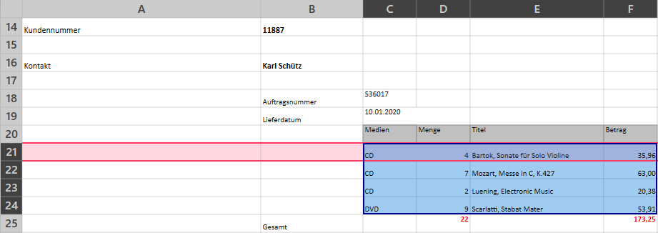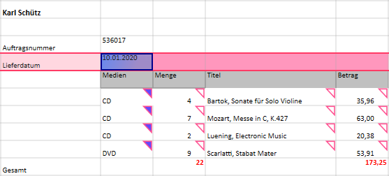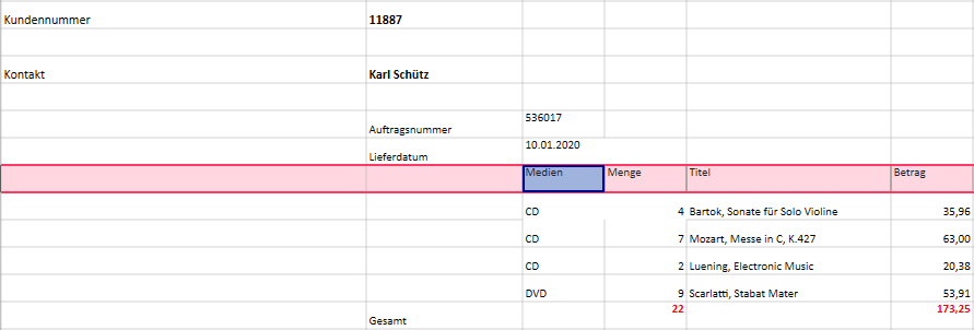 Wir können die Auftragsnummer (Zelle C18) mit den folgenden Eigenschaften selektieren: