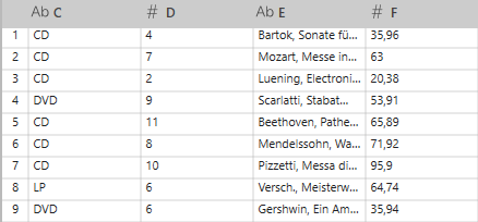 Die Beispieldaten werden in der Vorschautabelle angezeigt: