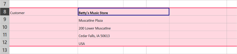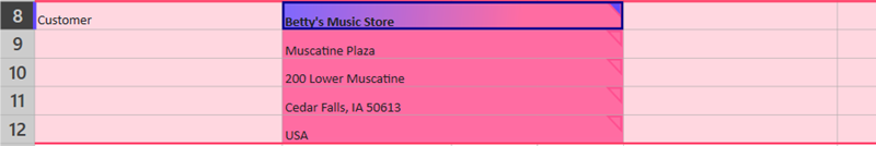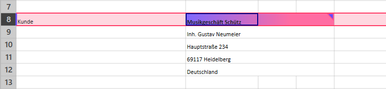 In diesem Beispiel können wir den Kundennamen selektieren und dann die Spalten der Adressenzeilen definieren: