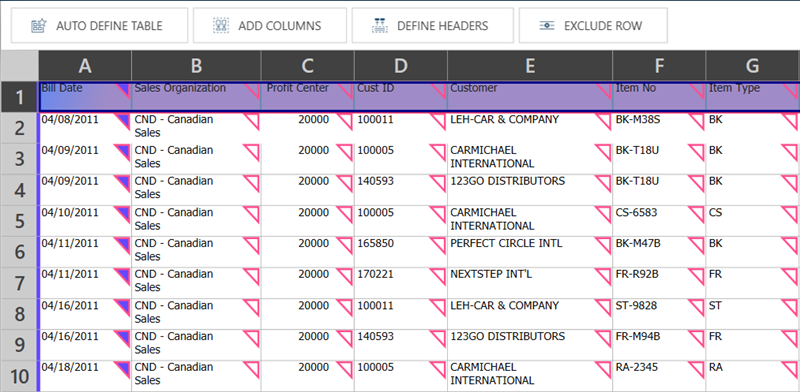 Es ist zu beachten, dass die Kopfzeile einbezogen wurde. Sie können einfach diese Zeile auswählen und sie ausschließen oder sie mit dem Werkzeug „Kopfzeilen definieren“ als Kopfzeile festlegen.