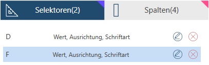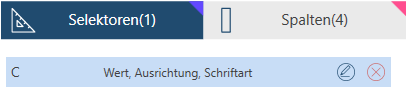 Die Selektoren und Spalten werden der Liste der Selektoren und Spalten für das aktuelle Muster hinzugefügt: