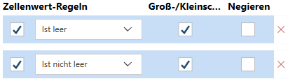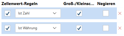 Wenn es mehrere Wertregeln gibt, werden diese anhand des Logikoperators UND kombiniert.