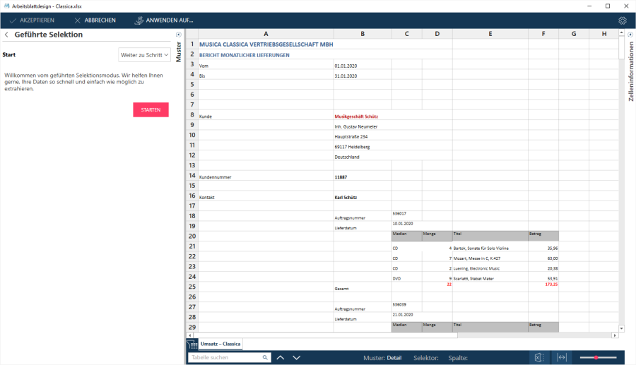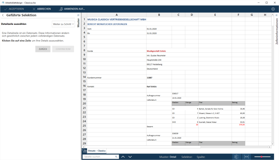 Bei dieser Methode wählen Sie Detailzeilen aus bzw. ab und der Assistent versucht die Selektoren so zu anzupassen, dass Ihre Auswahlkriterien erfüllt werden.