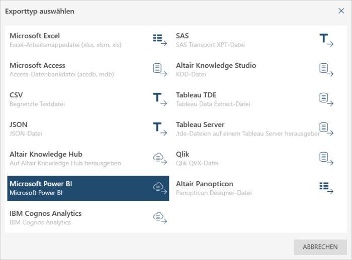 Das Dialogfeld Exporttyp auswählen wird angezeigt.