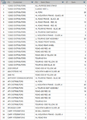 Beispielsweise Datensätze wie diese mit Kunde und Elemente und Menge: