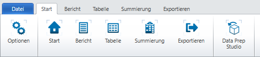 Wenn Ihre Lizenz es zulässt und Sie Panopticon auf Ihrer Arbeitsstation installiert und aktiviert haben, erscheint das Panopticon-Symbol auch in den Start-, Tabellen-, und Summierungsansicht-Multifunktionsleisten.