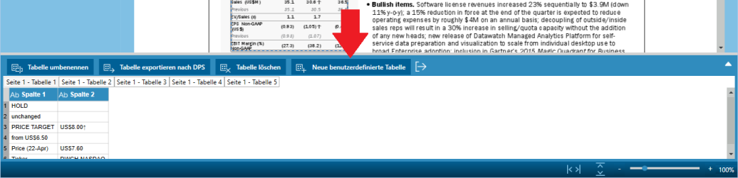 Klicken Sie auf Neue benutzerdefinierte Tabelle auf der Aktionsleiste oben im Fensterbereich „Tabelle“.