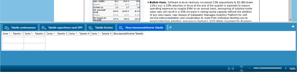 Dem Fensterbereich „Tabelle“ wird eine neue Tabelle mit eigener Registerkarte hinzugefügt. Der Standardname für diese Tabelle lautet: Ad-hoc-Tabelle.