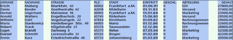 Daten aus beiden Tabellen, die durch die Überschneidung definiert wurden, werden zu einer Tabelle im Tabellenfensterbereich zusammengelegt. Falls die anzuhängenden Tabellen bzgl. der Anzahl der Spalten nicht miteinander übereinstimmen, erscheint der Anhängebefehl nicht.
