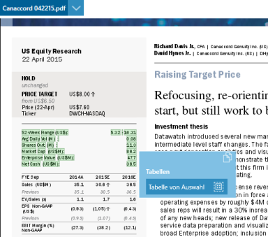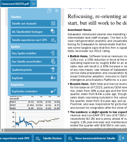 Anhand des Berichtstextes können Sie neue Tabellentitel erstellen.