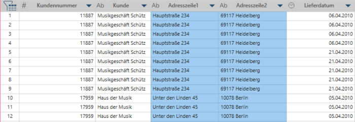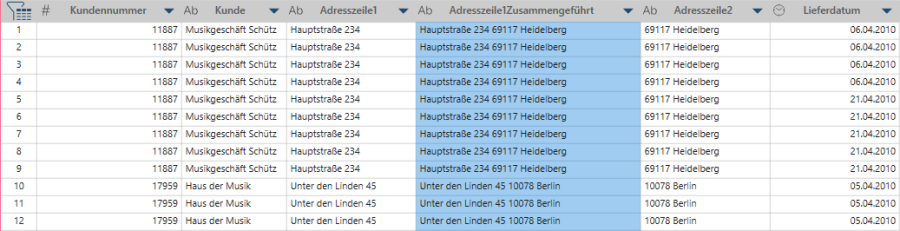 Klicken Sie auf OK. Die ausgewählten Spalten werden zusammengeführt.