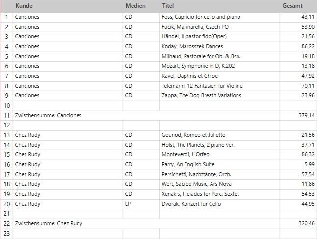Die Summierung wird jetzt mit dem neuen Namen für das Zeilenfeld angezeigt.