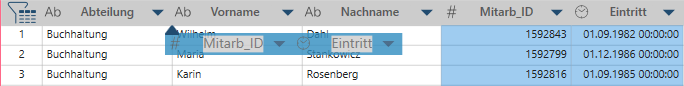 Wählen Sie Spaltenkopfzeilen der Spalten durch UMSCHALT+Klicken aus, wenn mehrere aufeinanderfolgende Spalten verschoben werden sollen, bzw. durch STRG+Klicken, wenn mehrere individuelle Spalten benötigt werden.