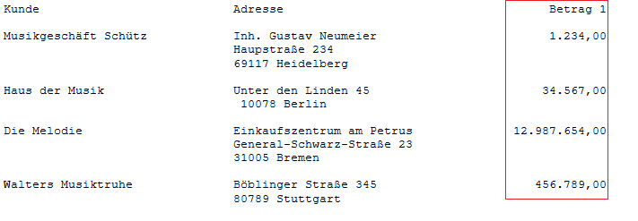Fügt dem Bericht eine dynamische Führungslinie hinzu. Dynamische Führungslinien achten beim Überprüfen des Berichts auf die Ausrichtung und passen den Dehnungsfaktor an. Klicken Sie auf einen bestimmten Punkt in einer Zeile, um festzulegen, wo die Führungslinie beginnen soll, und ziehen Sie dann die Maus bis zum Ende des zu verfolgenden Bereichs, um ihn hervorzuheben. Rechtsklicken Sie und wählen Sie „Dynamische Führungslinie hinzufügen“. In der Abbildung unten weist die dynamische Führungslinie eindeutig auf Ausrichtungsprobleme im Bericht hin.