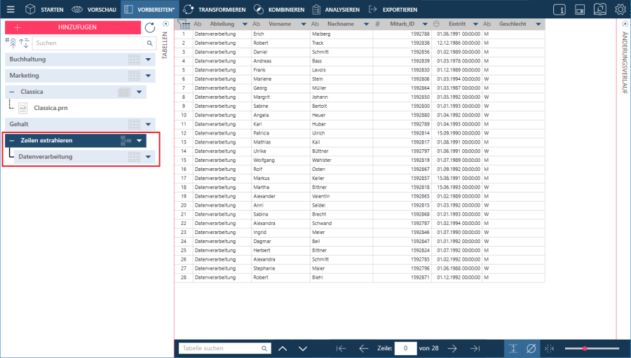 Monarch Data Prep Studio entfernt leere Datensätze und erstellt eine neue Tabelle: