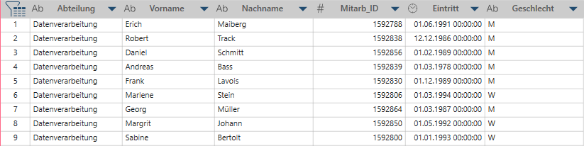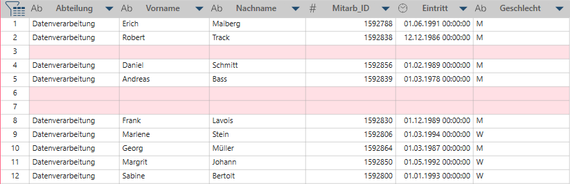 Sie entfernen leere Zeilen und erhalten eine Tabelle wie diese: