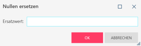 Beim Anwenden dieses Vorgangs fordert Data Prep Studio Sie zuerst auf, die Zeichen einzugeben, mit denen Sie die Nullen ersetzen möchten: