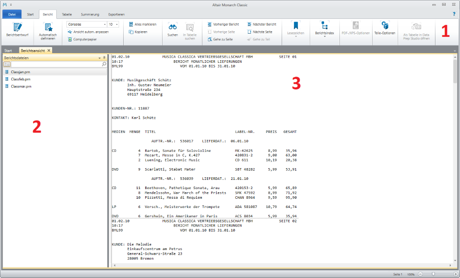 Berichtsansicht ermöglicht die Arbeit mit Berichten. Von der Berichtsansicht können Sie auch auf Berichtsentwurf klicken, um Berichtsmuster zu erstellen.