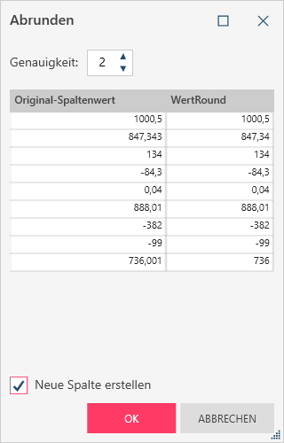 Wenn Sie diesen Vorgang anwenden, werden Sie zuerst aufgefordert, die Rundungsgenauigkeit festzulegen.