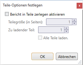 Geben Sie anhand der vorhandenen Steuerelemente eine Teile-Größe an (in Anzahl von Seiten) und welcher Teil in der Berichtsansicht geladen werden soll.