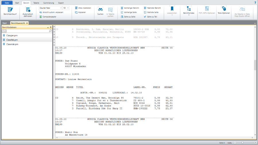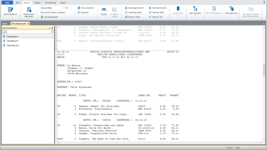 Laden Sie einen Bericht in Monarch Classic Classic.