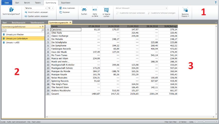 Mit Summierungen können Sie Ihre Daten analysieren.