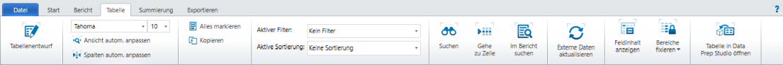 Tabellenansicht-Multifunktionsleiste – Referenz