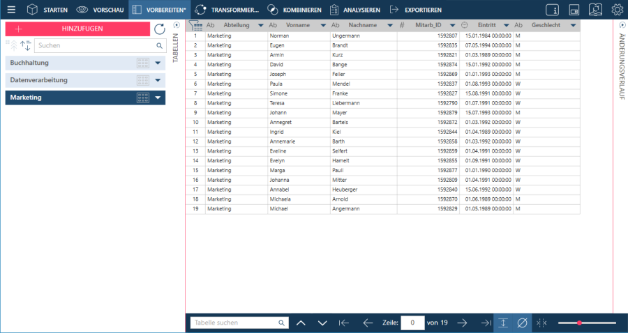 Eine Tabelle in Ihren Arbeitsbereich zwecks Zusammenführung und Transformierung laden