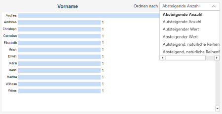 Wenn Sie die Zeilen einer ausgewählten Spalte statistisch sortieren möchten, wählen Sie eine Option aus der Liste Sortieren nach aus: