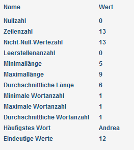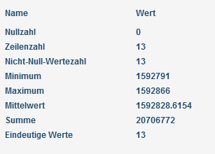Für numerische Spalten werden die folgenden Statistiken angezeigt: