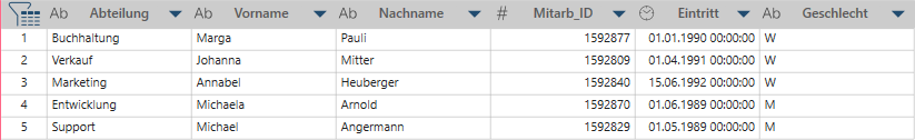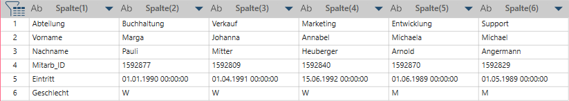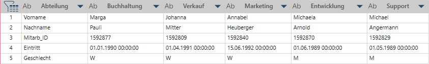 Jeder Abteilungswert wird zu einer Spaltenüberschrift.