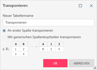 Die neue Tabelle erhält den Namen Transponieren. Sie können die Tabelle nach Bedarf umbenennen.