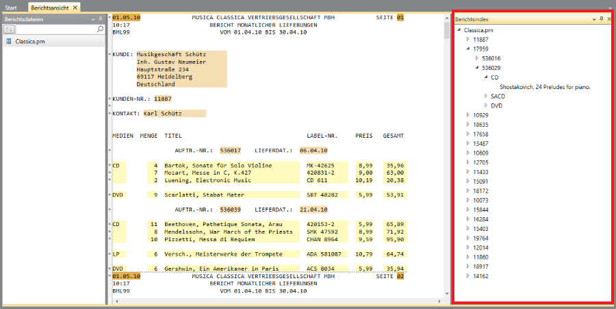 Der Berichtsindex bildet beim Exportieren des Berichts in eine PDF-Datei auch die Grundlage für Lesezeichen.