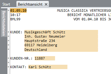Mit dem Selektor kann, je nach der aktuellen Ansicht, Folgendes angezeigt werden: Bericht, Muster, Tabelle, Summierung oder Export.