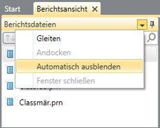 Der Selektor kann automatisch verdeckt gestellt werden, damit Sie die maximale Dokumentanzeigefläche erhalten und gleichzeitig schnellen Zugriff auf den ihn beibehalten.