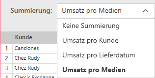 Sie können eine beliebige Anzahl von Summierungen für eine ausgewählte Tabelle erstellen und dann unter Verwendung des Dropdown-Menüs „Summierung“ anzeigen.