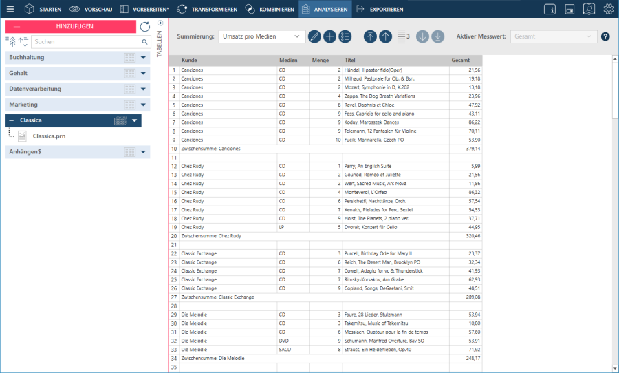 Summierungen in Data Prep Studio anzeigen